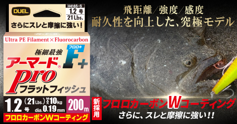 デュエルでは従来のPEラインと比べて強度、感度、飛距離をアップさせ、風に強くトラブル知らずの「アーマード®」シリーズをラインナップしています。