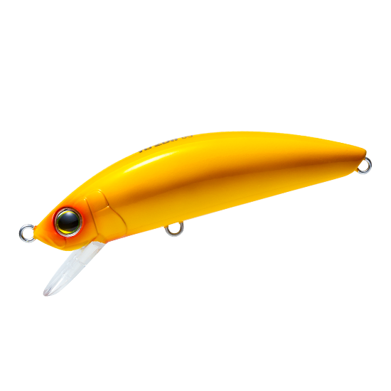 The shape and weight position causes the lure to be slow sinking and have a sharp and wide darting action. - QUICK RESPONSE by FIXED WEIGHTED CENTER