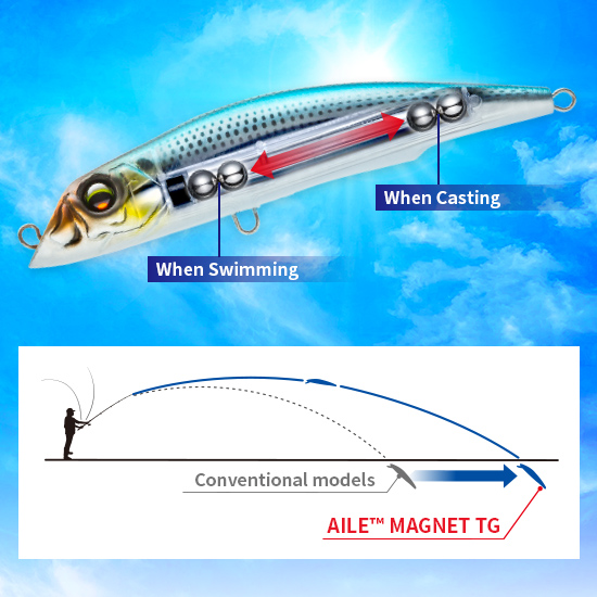 Weighted balls move to the tail end inside the body, creating explosive casting distance.When Swimming