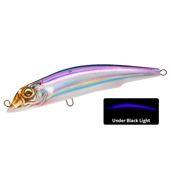 Despite its natural color, it stands out thanks to its UV reactive color. Often effective when fish activity is low, and is recommended when appeal-type or natural-type colors are not producing results. It is effective even in conditions where visible light is weak, such as around dawn/dusk or in deep areas.