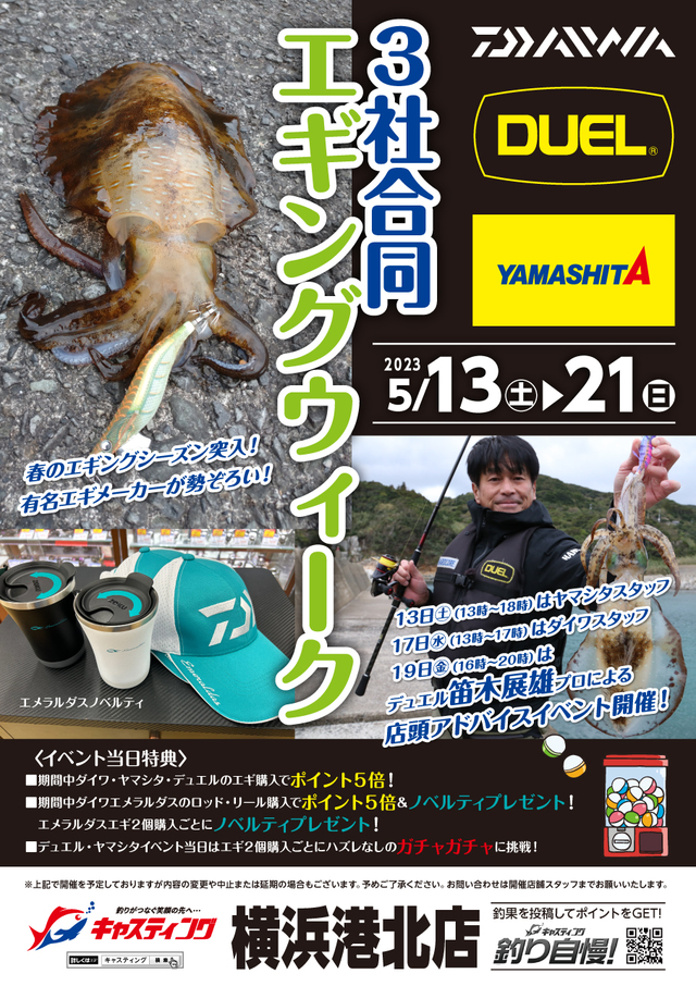 キャスティング 横浜港北店様「3社合同エギングウィーク」に笛木プロが登場!!