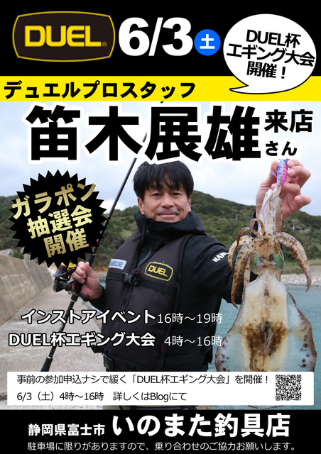 【追記】いのまた釣具店様「DUEL エギング ファン感謝デー」に笛木プロが登場!!