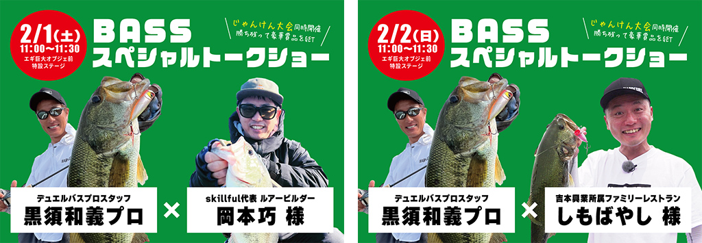 ・2/1(土)11:00~11:30【バスプロスタッフ黒須和義プロ × skillful代表 ルアービルダー岡本巧様】