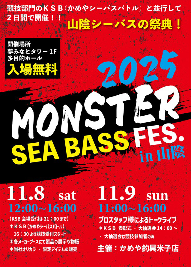 今週末の11月8日(土)より「モンスターシーバスフェス in 山陰」が開催となります!!