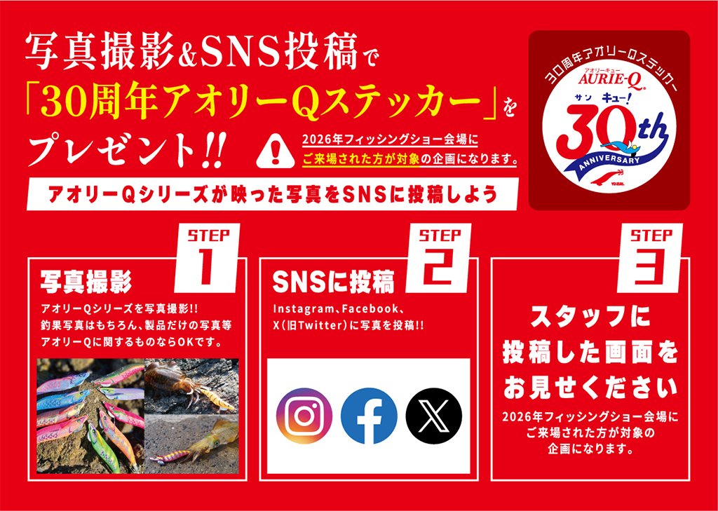 アオリーQシリーズを写真撮影&SNS投稿で「30周年アオリーQステッカー」をプレゼント!!