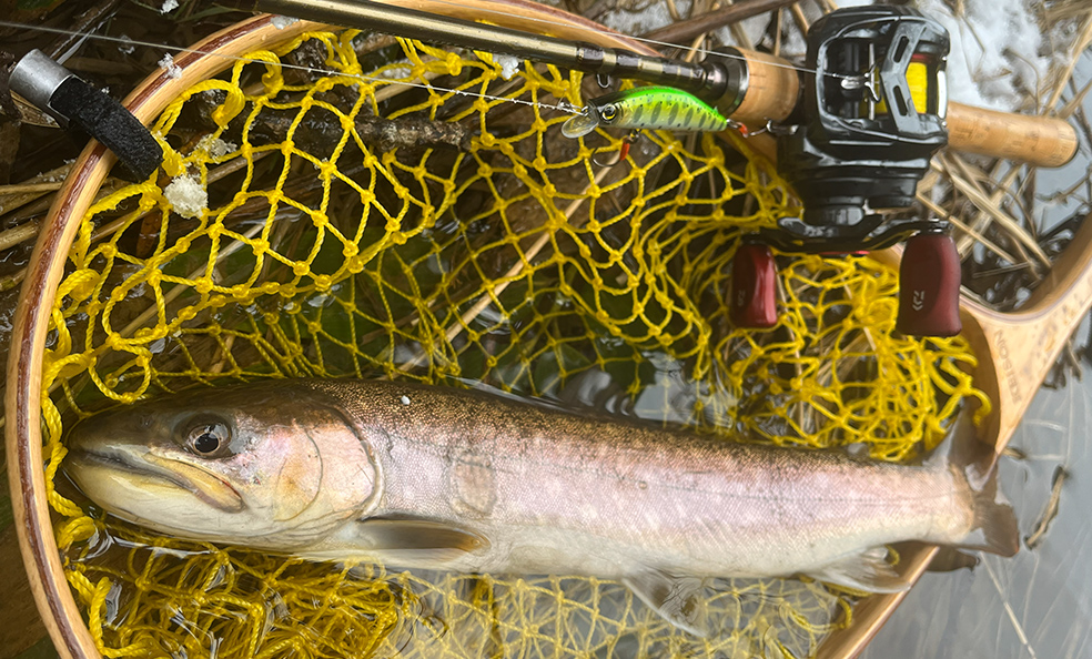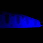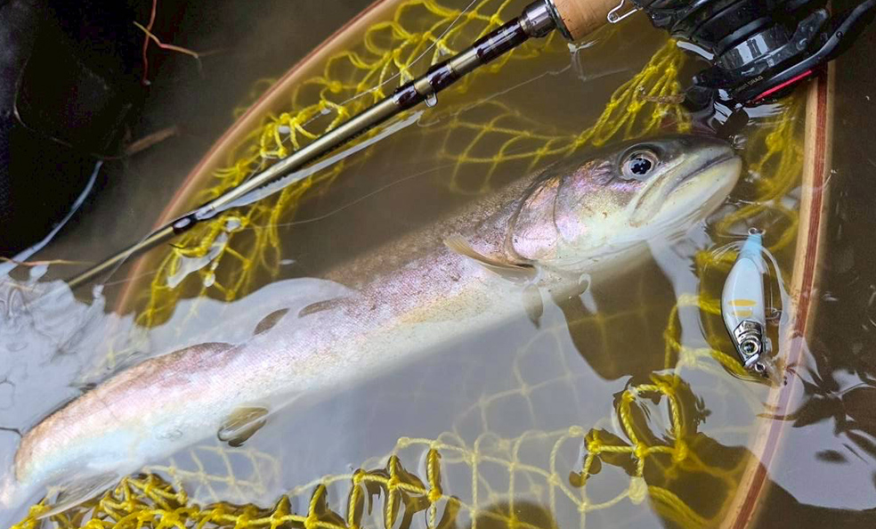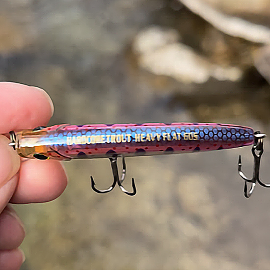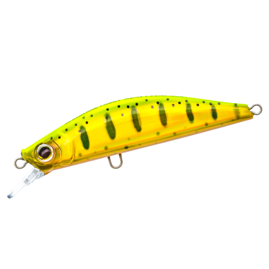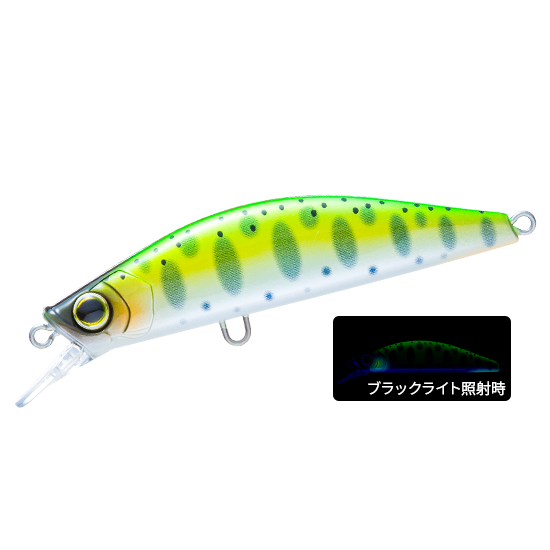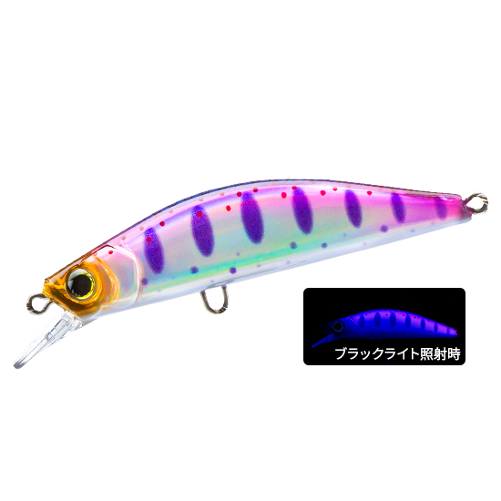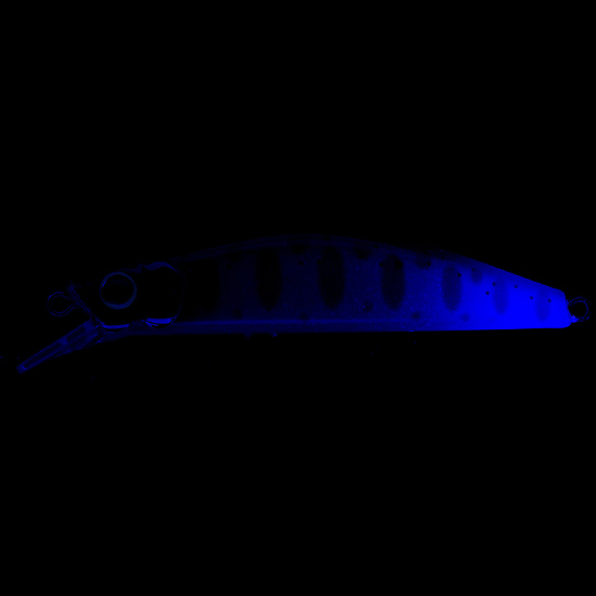 トラウトに効果の高いと言われるUVをテイル部にのみ採用。前からは見えないが、ルアーが魚の目の前を通り過ぎたあとからUVアピール!