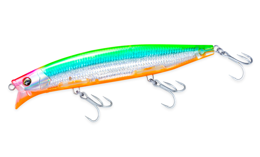 ボディに内蔵されたホログラムインナーシートはどんなに傷ついても剥がれることなく半永久的に輝き続け、リアルレンズフィニッシュとの相乗効果によりリアルかつ、強烈なフラッシングで遠くから魚を呼び寄せバイトに持ち込みます。