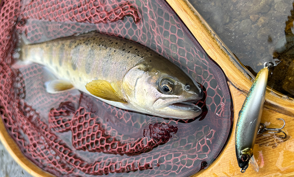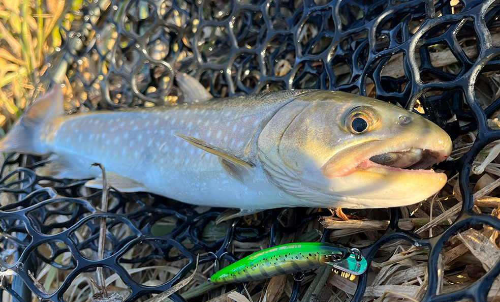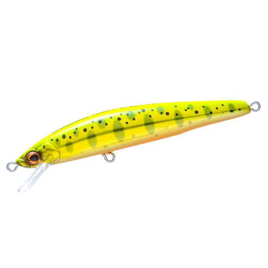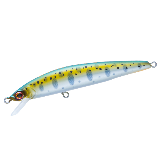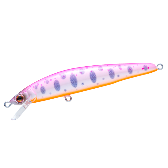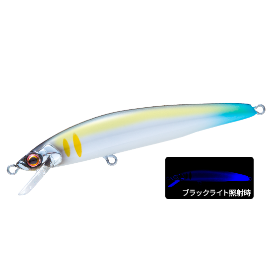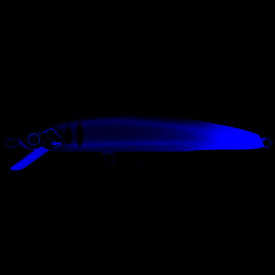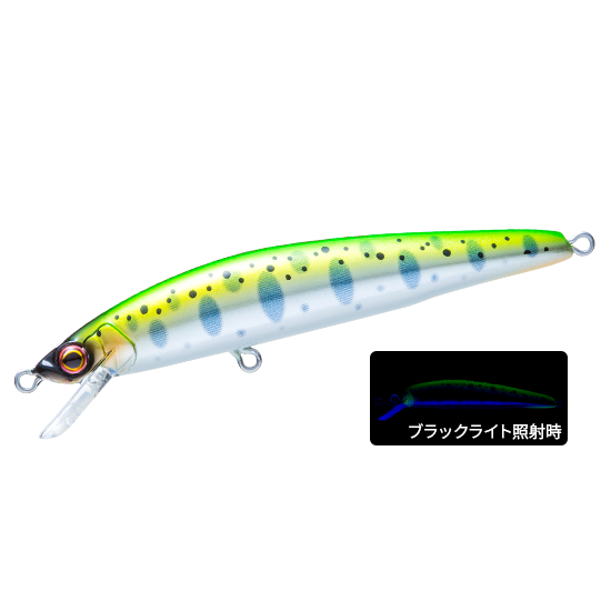 トラウトに効果の高いと言われるUVをテイル部にのみ採用。前からは見えないが、ルアーが魚の目の前を通り過ぎたあとからUVアピール!