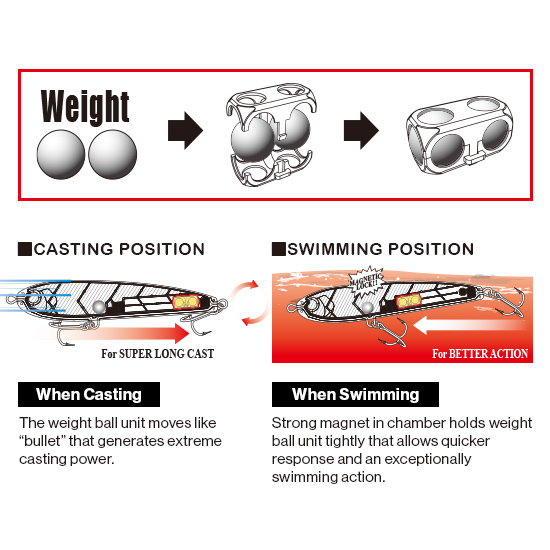 Strong magnet in chambar holds weight ball unit tightly that allows quicker response and an exceptionally swimming action.*The image is MAG™ DIVE