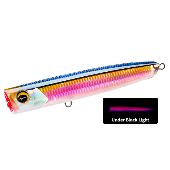 Despite its natural color, it stands out thanks to its UV reactive color. Often effective when fish activity is low, and is recommended when appeal-type or natural-type colors are not producing results. It is effective even in conditions where visible light is weak, such as around dawn/dusk or in deep areas. -
