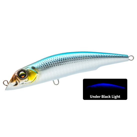 Despite its natural color, it stands out thanks to its UV reactive color. Often effective when fish activity is low, and is recommended when appeal-type or natural-type colors are not producing results. It is effective even in conditions where visible light is weak, such as around dawn/dusk or in deep areas.