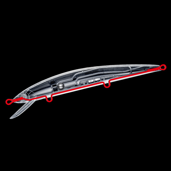 The weighted ball moves to the tail end inside the body, creating explosive casting distance.When Swimming