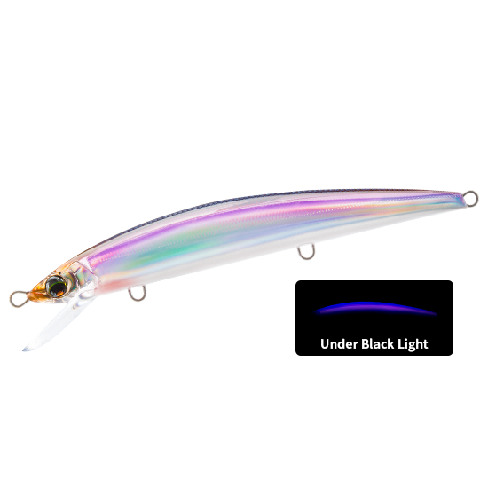 Despite its natural color, it stands out thanks to its UV reactive color. Often effective when fish activity is low, and is recommended when appeal-type or natural-type colors are not producing results. It is effective even in conditions where visible light is weak, such as around dawn/dusk or in deep areas.
