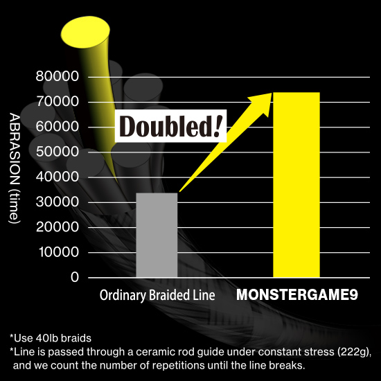Straight SUPER STRONG core PE strand makes MONSTERGAME 9 more abrasion resistant and more durable.
