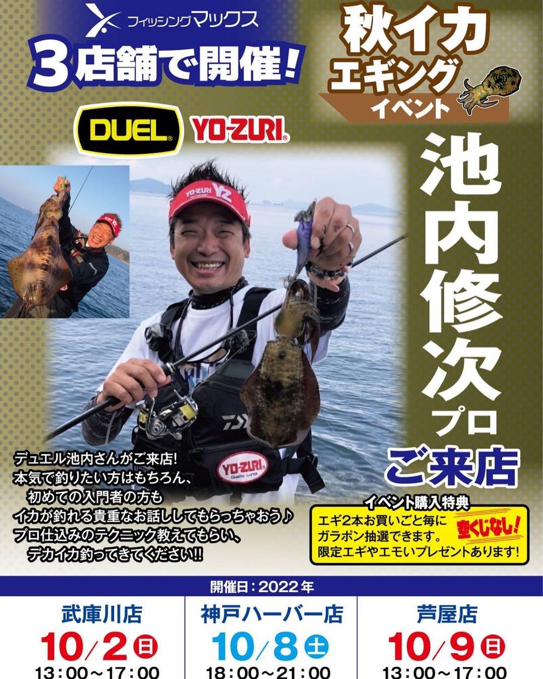 フィッシングマックス 各店舗様「秋イカ エギングイベント」に池内プロが登場します!