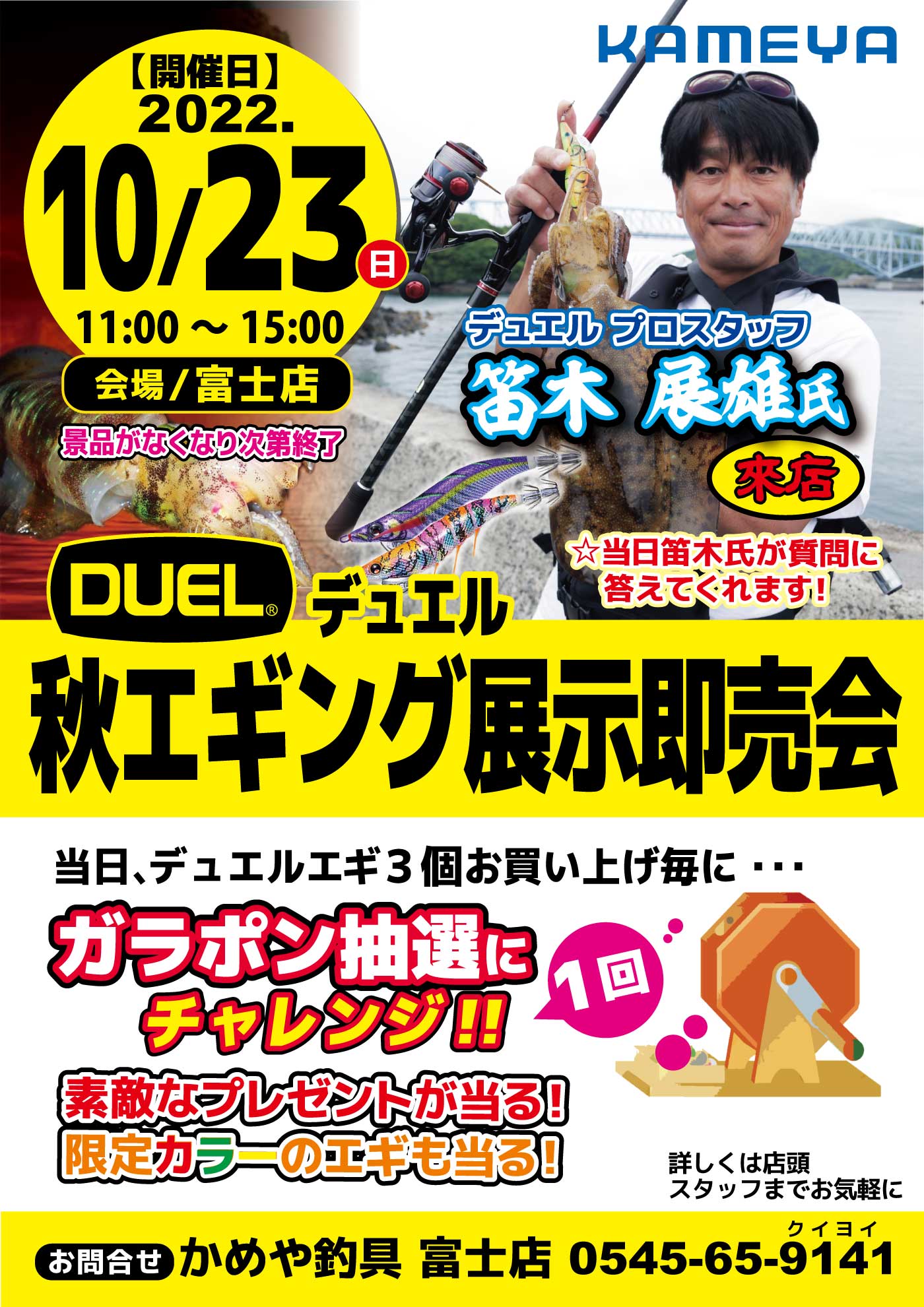 かめや釣具 富士店様「デュエル秋エギング展示即売会」 に笛木プロが登場!