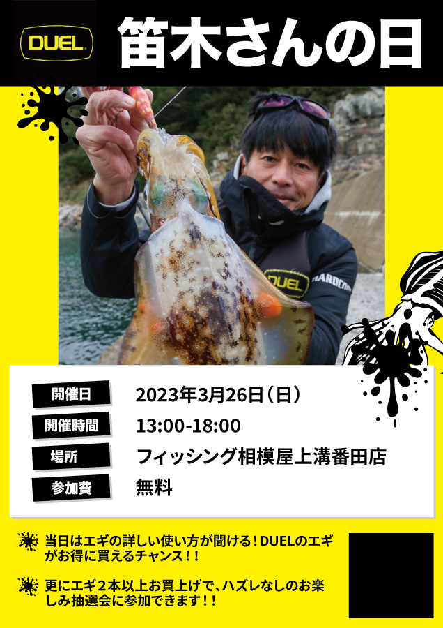 エギングシーンをリードする笛木プロが、エギングに関する皆様の疑問・質問に対し、店頭で直接アドバイス!
