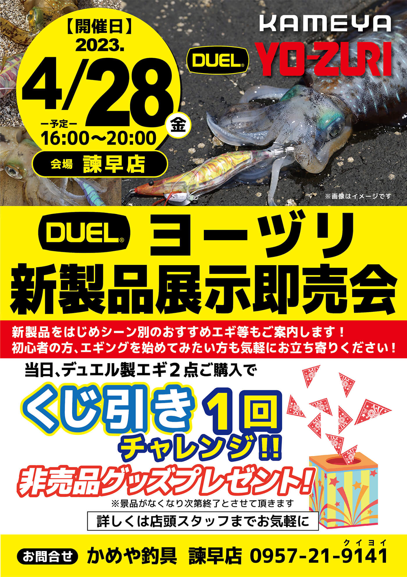 当日、対象エギ2点ご購入で非売品グッズが当たるくじ引きを開催!!