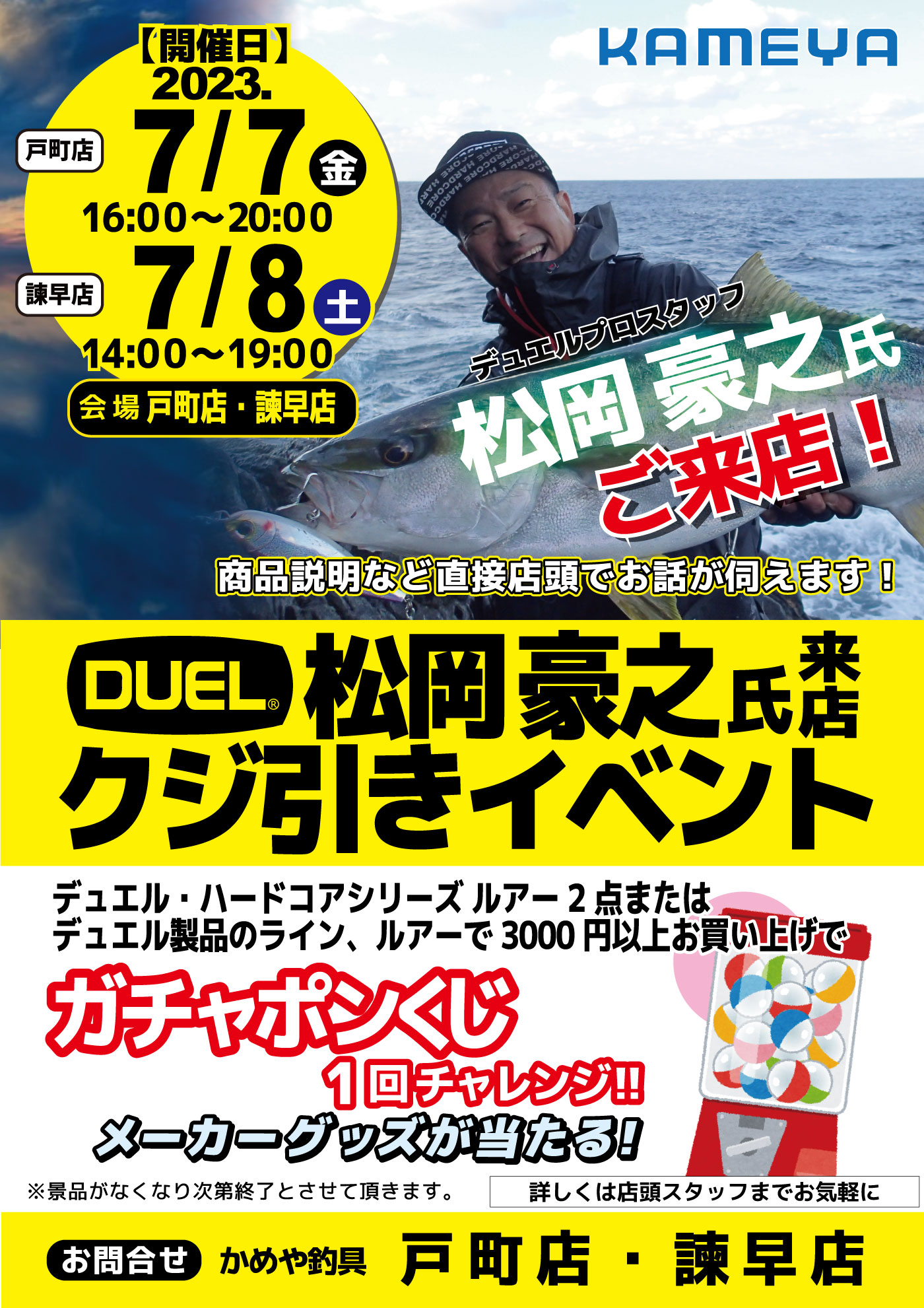 2023年7月8日(土)14:00-19:00 開催店舗:かめや釣具 長崎諫早店様