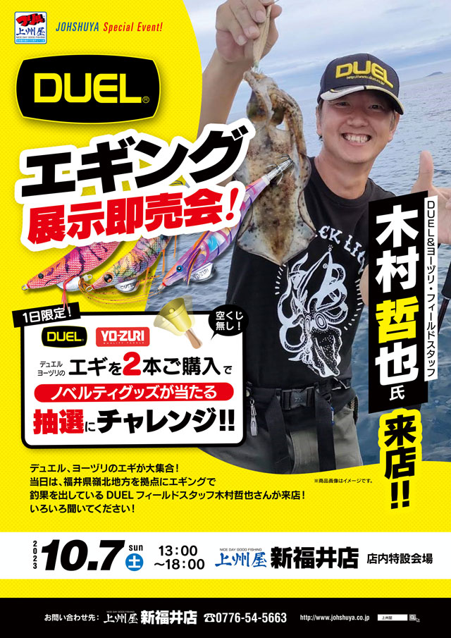 上州屋 新福井店様「デュエル エギング展示即売会」に木村氏が登場!!