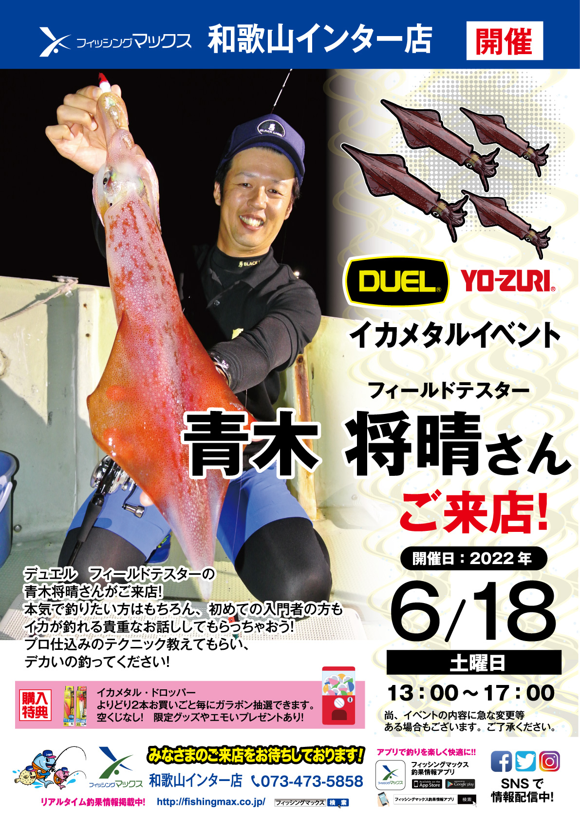 フィッシングマックス 和歌山インター店様で開催される「DUELイカメタルイベント」に、フィールドスタッフ・青木将晴氏が登場!