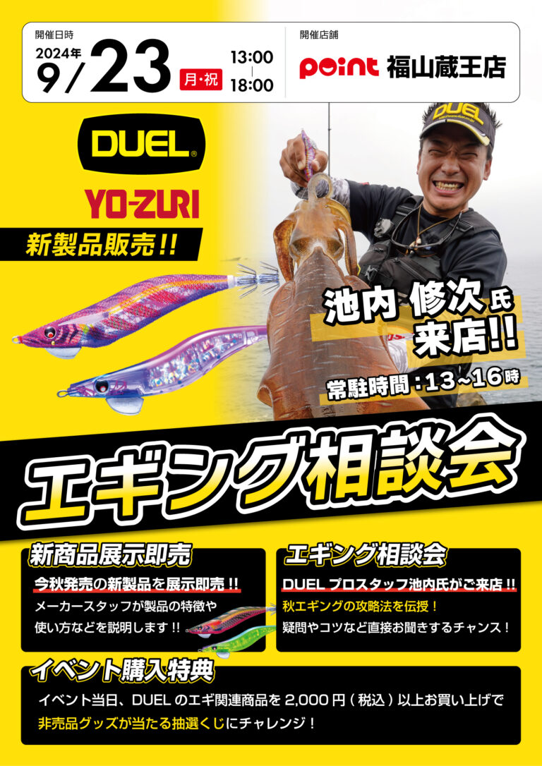 ポイント 福山蔵王店様「DUELエギング相談会」に池内修次プロが登場!!