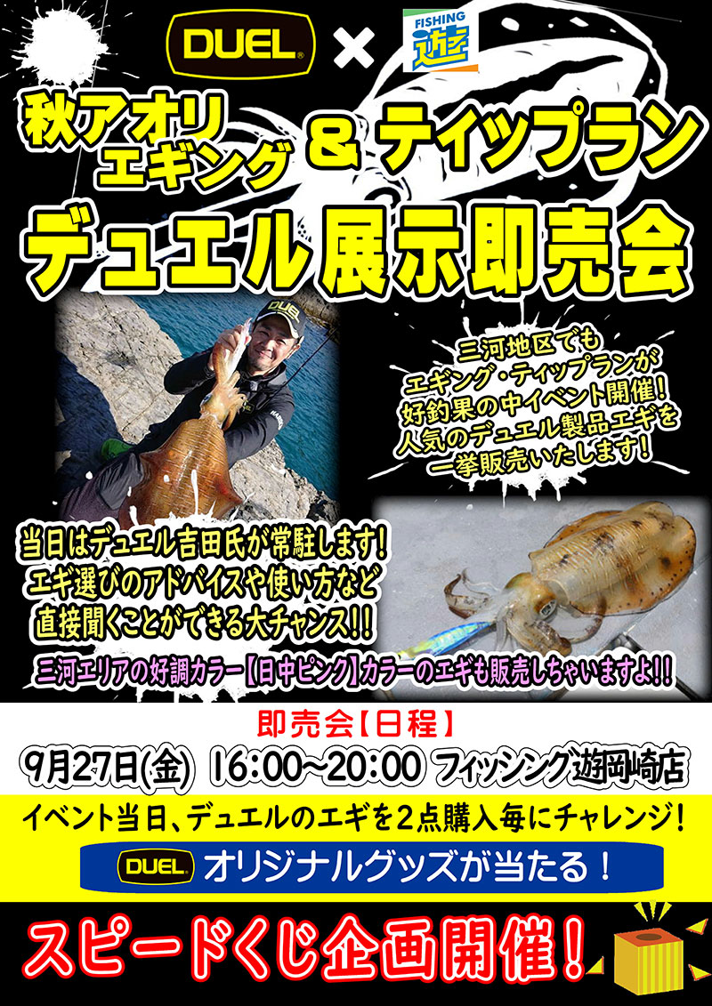 フィッシング遊 岡崎店様「秋アオリエギング&ティップラン デュエル展示即売会」開催!!