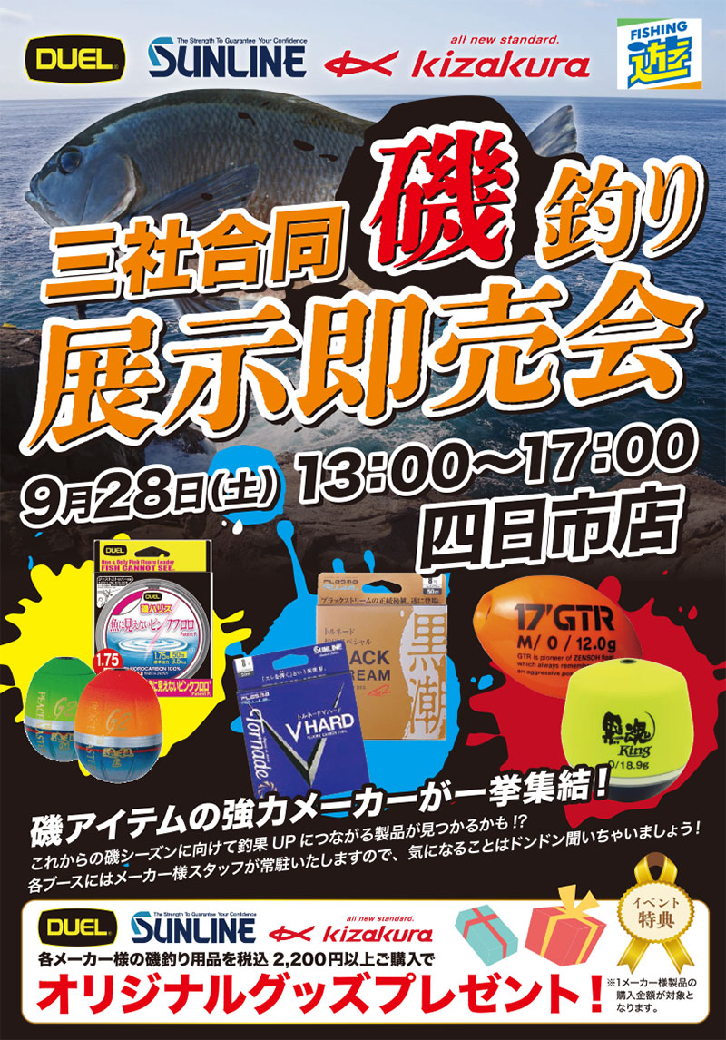 フィッシング遊 四日市店様「三社合同磯釣り展示即売会」開催!!