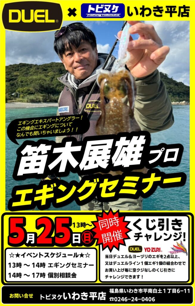 トビヌケ いわき平店様 笛木展雄プロによる「エギングセミナー」開催!!