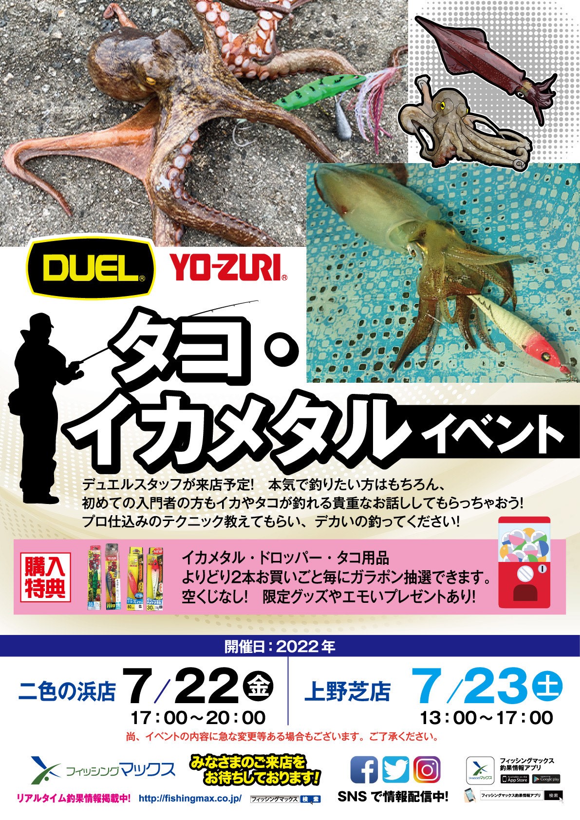 フィッシングマックス 二色の浜店様 上野芝店様 「タコ・イカメタルイベント」の開催が決定!