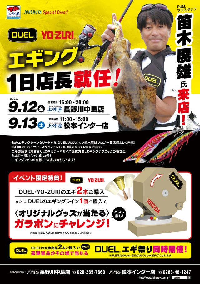 エギングのことなら、笛木店長になんでもお任せください!!