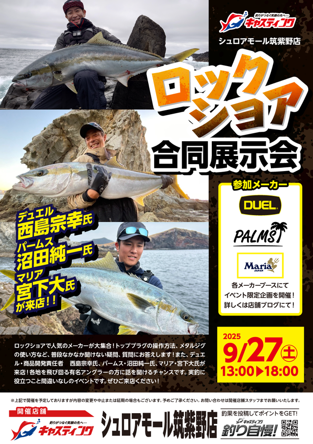 キャスティング シュロアモール筑紫野店様「ロックショア合同展示会」に開発・西島宗幸が登場!!