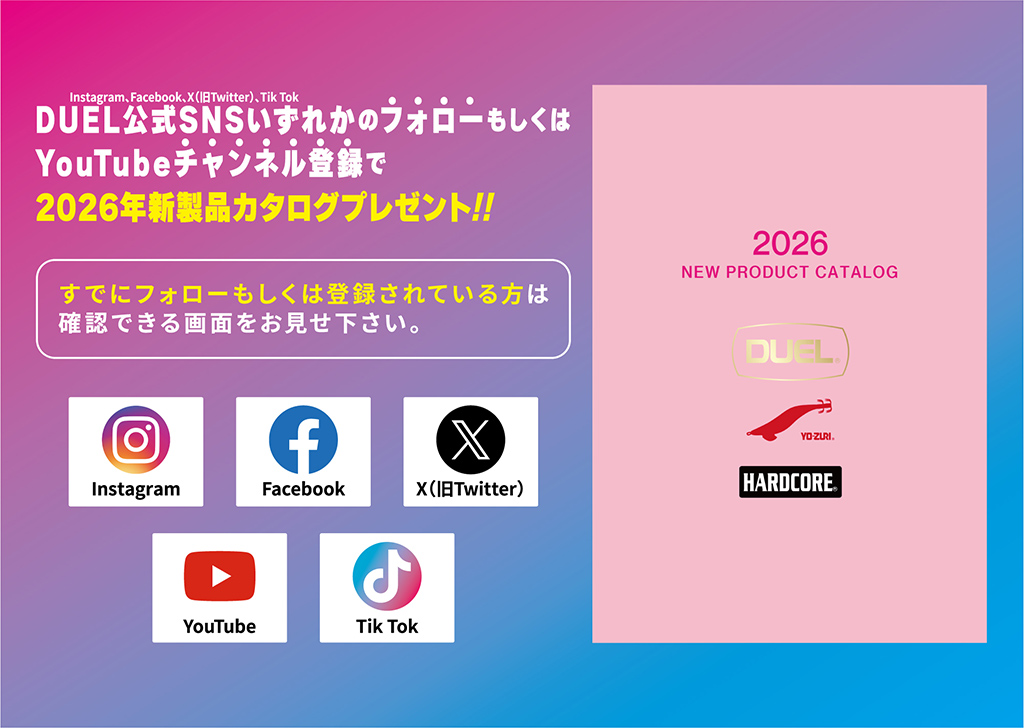 DUEL公式SNSフォローもしくはYouTubeチャンネル登録で「2026年新製品カタログ」をプレゼント。