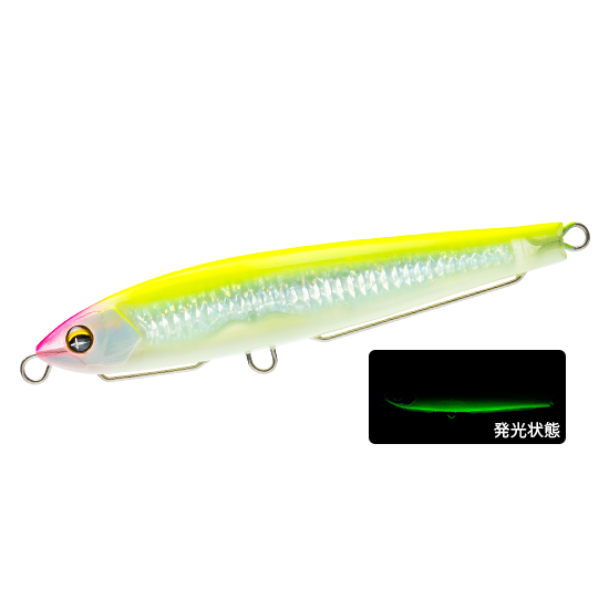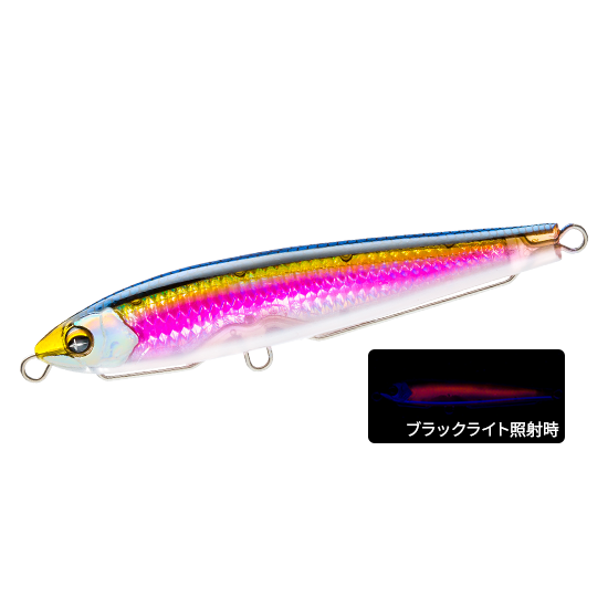 ボディに内蔵されたホログラムインナーシートはどんなに傷ついても剥がれることなく半永久的に輝き続け、リアルレンズフィニッシュとの相乗効果によりリアルかつ、強烈なフラッシングで遠くから魚を呼び寄せバイトに持ち込みます。 -