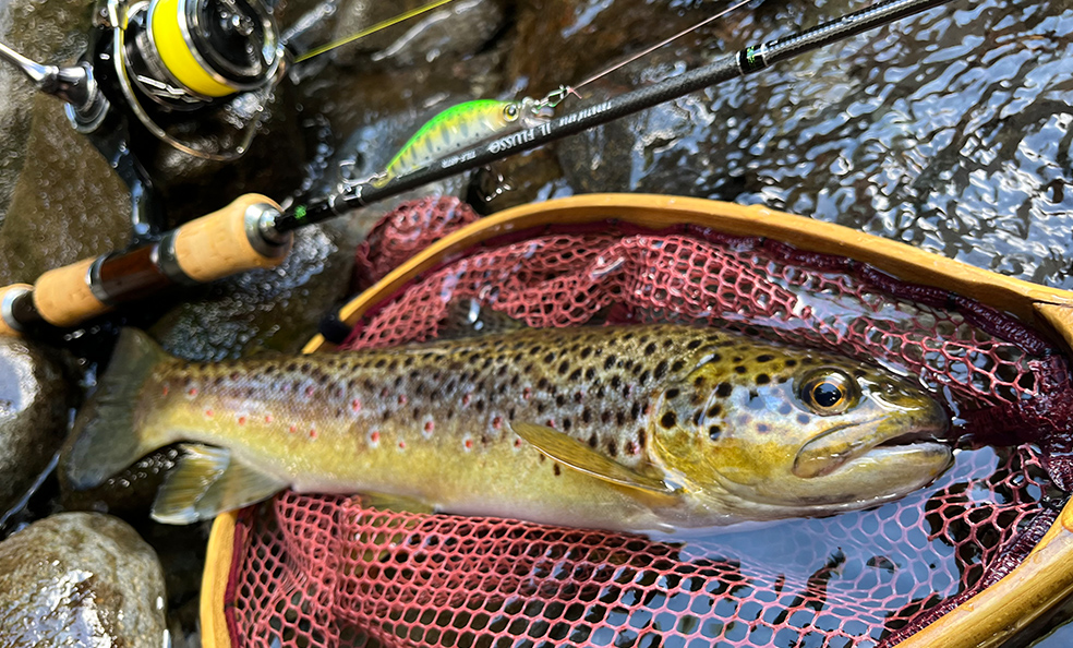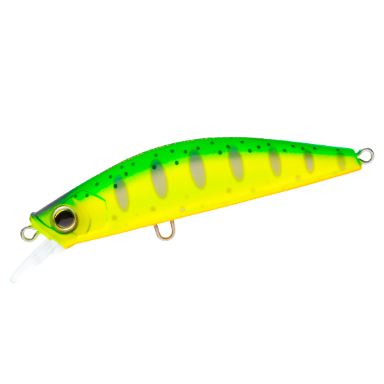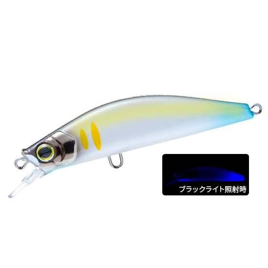 トラウトに効果の高いと言われるUVをテイル部にのみ採用。前からは見えないが、ルアーが魚の目の前を通り過ぎたあとからUVアピール!