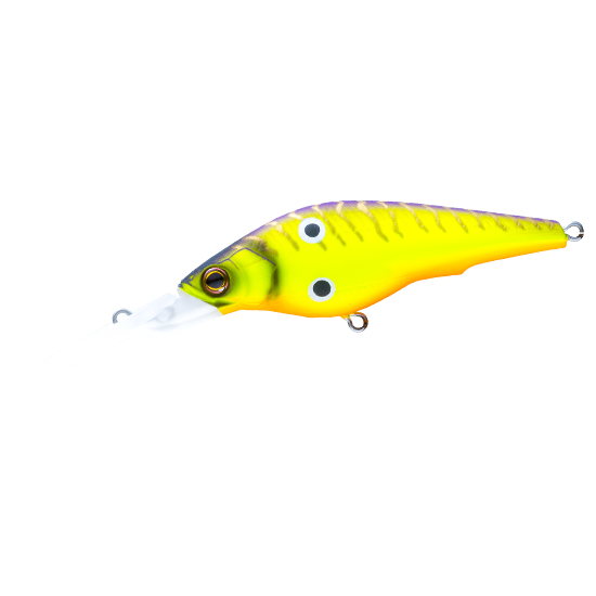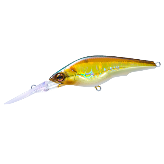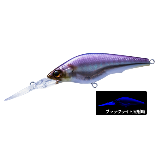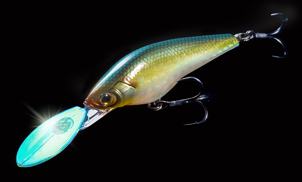 ① リップに搭載した透明ホログラムが、潜行時には太陽光を反射して遠くのバスにルアーの存在をアピール。