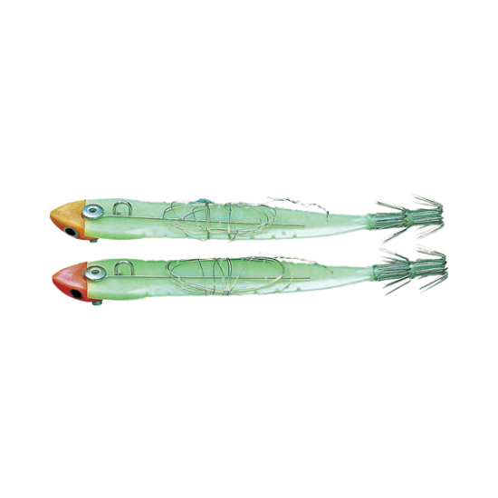 エサ巻イカスッテの背に生餌、魚の切り身などを固定し、図のようにセットしてください。