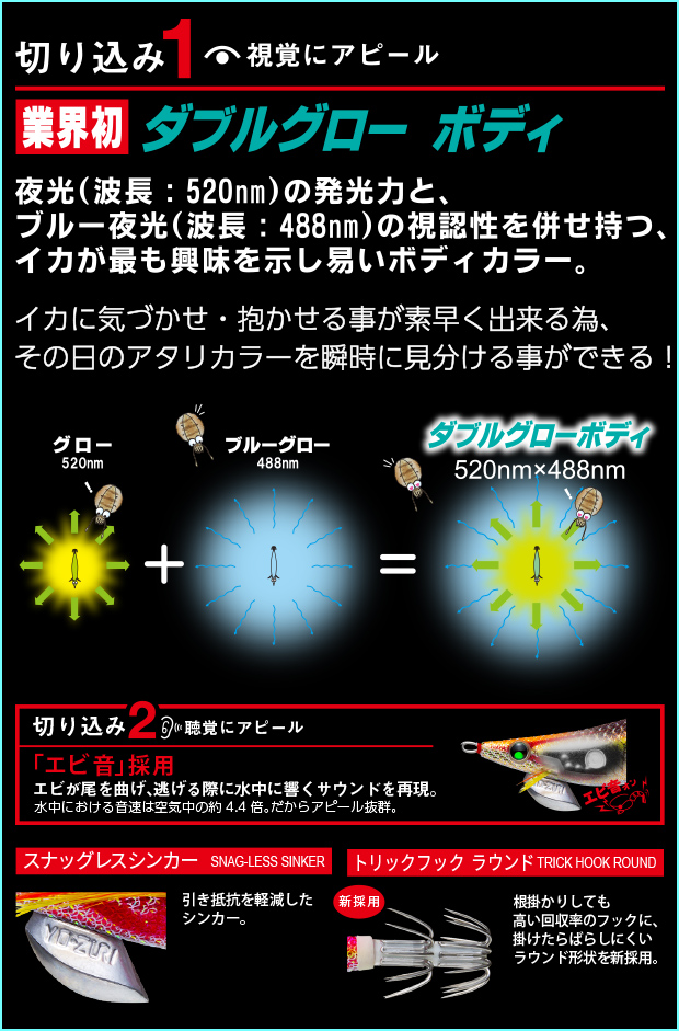 高いフラッシング効果で遠くのイカに強烈アピール。高活性時や濁り潮では特に威力を発揮する。